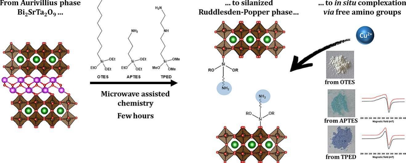 - Chapel, P.; Henry, T.; Payet, F.; Leuvrey, C.; Leroux, F.; Parizel, N.; Rabu, P.; Rogez, G. Topochemical Silanization of the Aurivillius Phase Bi2SrTa2O9 and Post-Synthesis Complexation. Applied Clay Science 2025, 278, 108017.